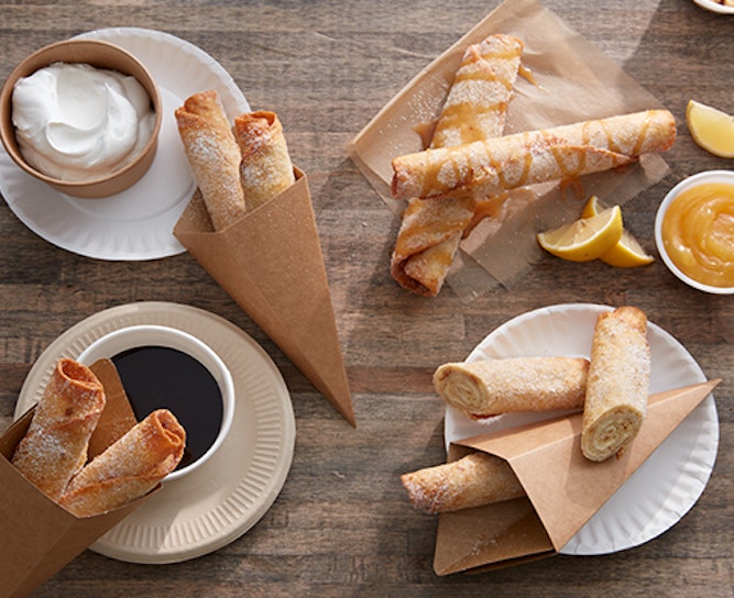 - Serve 1 Cheesecake Taquitos per order. To serve, top taquitos with a dusting powdered sugar and a dollop of the Horchata Whipped Cream and any other fun, delicious dessert toppings.