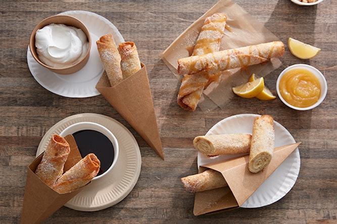 - Serve 1 Cheesecake Taquitos per order. To serve, top taquitos with a dusting powdered sugar and a dollop of the Horchata Whipped Cream and any other fun, delicious dessert toppings.