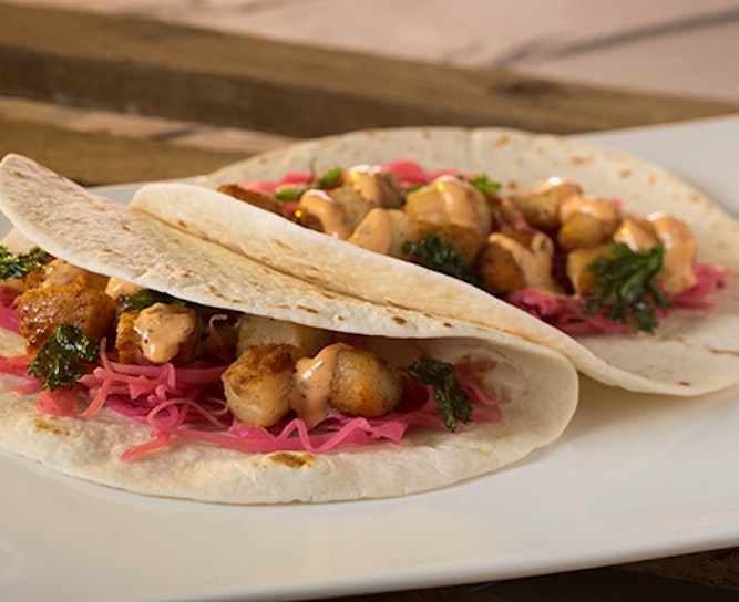 - To serve: Place 2 oz. scallops, ½ oz. pickled cabbage, and 1 tbsp. chipotle-citrus sauce on a tortilla. Garnish with flash fried cilantro and serve.