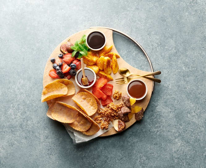 - Place mini dessert taco shells on a large platter and serve with the remaining ingredients for a build your own dessert taco board!
