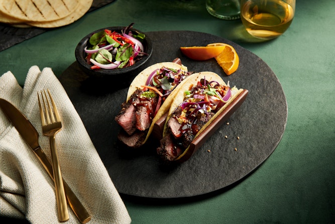 7. Place beef and Asian Spicy Slaw on tortilla.
