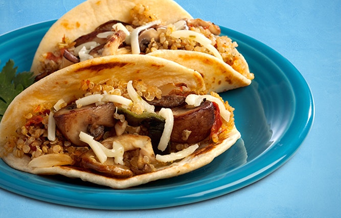 - To make 2 Mushroom & Poblano Tacos; Fill 2 warm tortillas each with 3 tablespoons sundried tomato quinoa, 2 poblano pepper strips, 2 tablespoons mushroom mixture and 1 tablespoon cheese. Serve warm.
