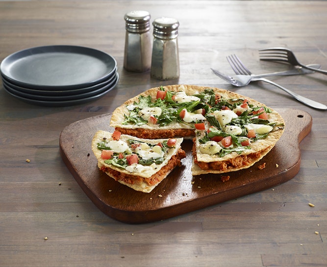 1. To assemble one pizza, prepare two 10" Mission® Fry-Ready™ Flour Tortillas according to package instructions.