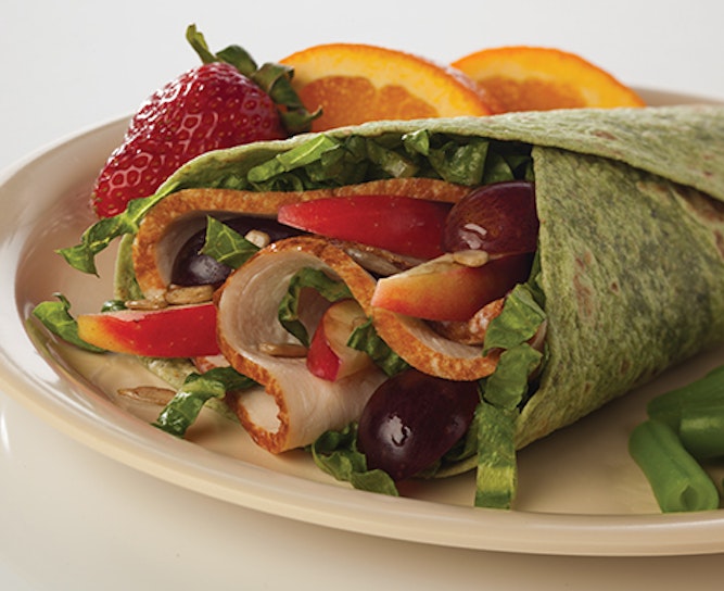 - Suggested Serving Instructions: Place 1 Turkey Wrap on compartment plate with 1/2 cup sliced strawberries, 1 small orange, 1 cup green beans, and 8 fl. oz. skim milk.