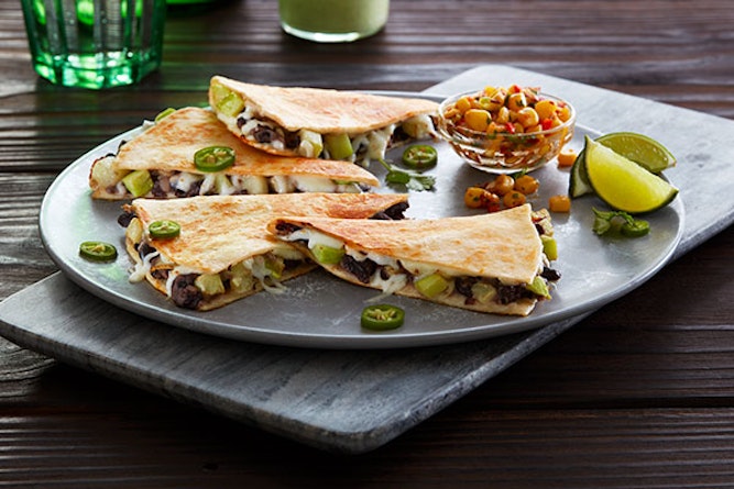 2. To prepare one quesadilla, spread one half of the 10" Flour Tortilla with ¼ cup of the puréed black beans. Top with 3 oz. of sautéed squash and 1 ½ oz. of Oaxacan cheese.